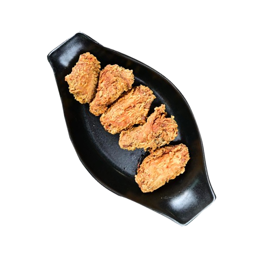 Fried chicken fillet, banana chilies, and lettuce, topped