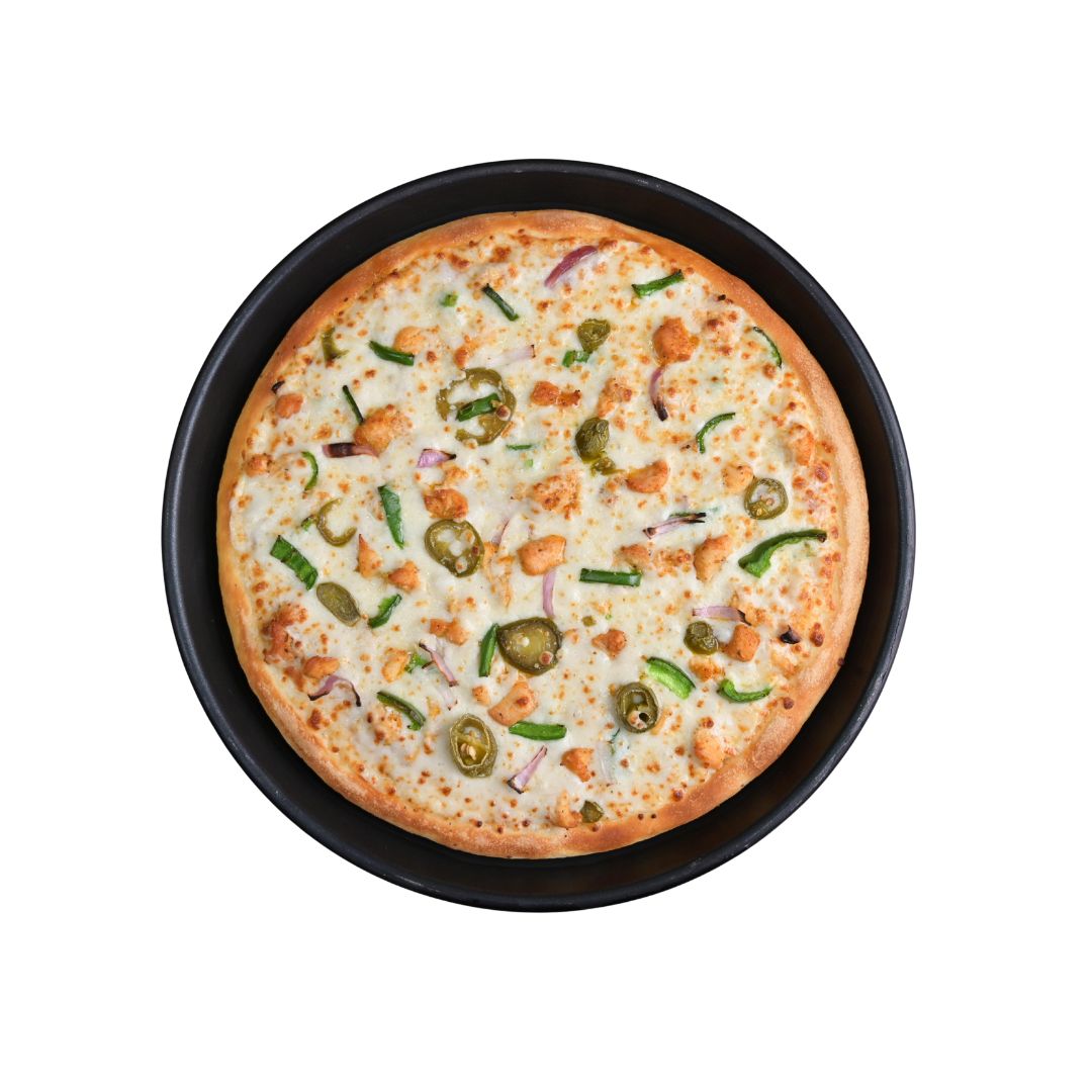 Zesty chicken fajita, spicy jalapeños, onions, and green peppers on a marinara cheese base.